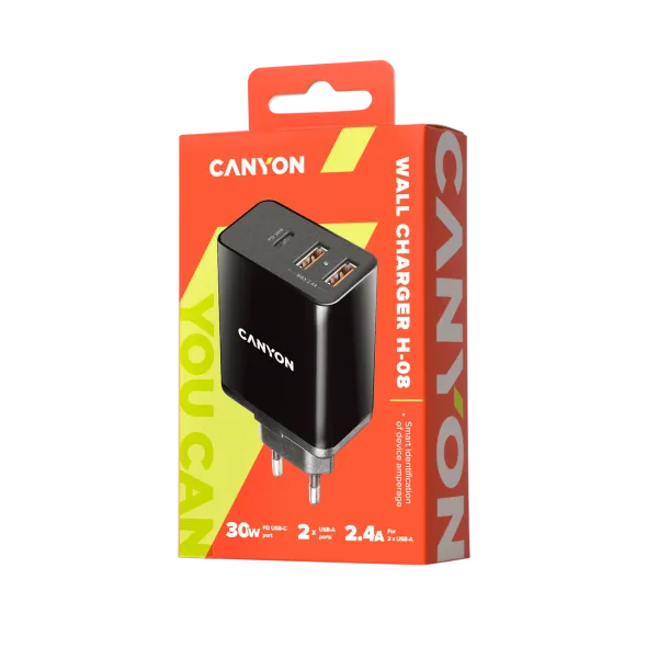 Висока производителност и бързо зареждане! Добър дизайн и още по-добра ефективност, благодарение на модерната технология за зареждане, разработена от CANYON. Зареждайте няколко устройства едновременно с висока скорост. Отличен избор за всеки, който има много приятели и много мобилни устройства!