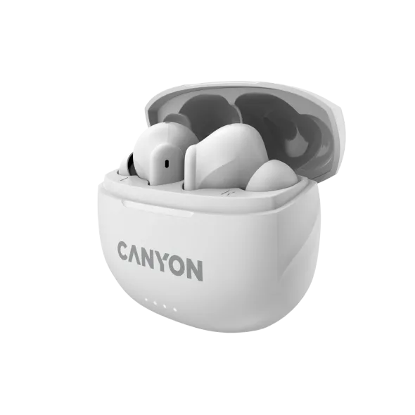 Ползвали ли сте до сега истински безжични слушалки? Има шанс да не погледнете назад с тези слушалки Canyon 13 мм високоговорители ще донесат радост на ушите ви, предлагайки балансиран звуков профил. Не само за музика – тези слушалки са чудесен спътник за разговори и конференции. Четири микрофона работят заедно, за да осигурят шумопотискане на околната среда. Например ако често провеждате разговори в шумна среда, тази технология ви помага да чуете и да бъдете чути. Тези слушалки могат да се похвалят с впечатляващ живот на батерията, предлагайки до 7,5 часа възпроизвеждане само с едно зареждане. В комбинация с кутията, можете да се насладите на до 32 часа употреба. Самата кутийка може да бъде напълно заредена само за два часа с помощта на всеки Type-C кабел. Използваме най-новия Bluetooth протокол, който е надежден и енергийно ефективен. Той осигурява и поддържа стабилна връзка между слушалките и вашето мобилно устройство. Плюс това, ниската латентност от 50 милисекунди прави тези слушалки доста добри и за игри. Леки и ергономични, те почти не се усещат на ухото. За да осигурим максимален комфорт при употреба, на ваше разположение са три размера силиконови тапи, които сме добавили в комплекта.